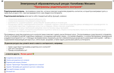 Рис. 2. Проект на тему «Программы родительского контроля» студента 3 курса факультета математики, физики и информатики Колобаева М.