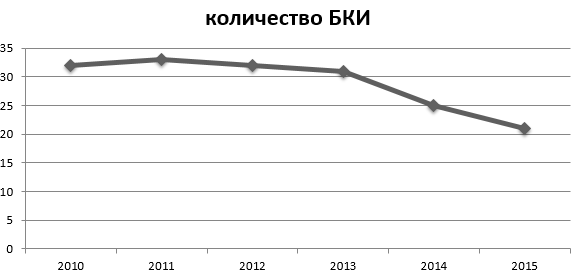 В результате консолидации количество бюро кредитных историй (далее – БКИ) снизилось с 32 в 2012 г. до 25 в 2014 г. (рис. 1).