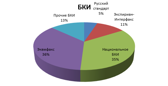 Более 96% о кредитных историях россиян сосредоточено в 4 наиболее крупных БКИ: "Эквифакс Кредит Сервизи", "Национальное бюро кредитных историй", "Экспириан- Интерфакс" и "Русский стандарт".