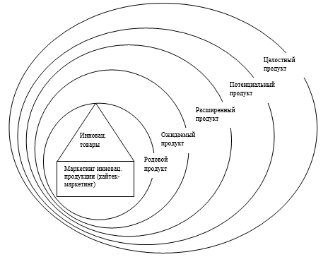 Актуальность темы исследования. В нынешних реалиях инновационного развития экономических (макро-, мезо- и микро-) уровней в РФ продвижение на рынок новейшей продукции становится одним из важнейших пунктов научных исследований. За последние несколько лет инновационный маркетинг укрепляет свои позиции приоритетного элемента социально-экономической сферы и становится частью системы регулирования рыночной деятельности хозяйствующих субъектов, являющихся субъектами инновацино-инвестиционного рынка, выдвигающих новейшие товары. В последнее время сильно ускорилось развитие новейших ответвлений в структуре маркетинга: «хайтек-маркетинг», «рынок хайтек-продукта», «хайтек-продукт».