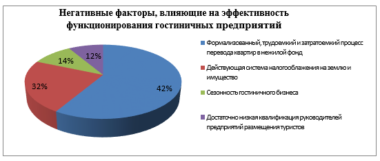 Проведенный нами контент-анализ позволил выявить структуру факторов, негативно влияющих на эффективность функционирования гостиниц и иных средств размещения (рис.2).
