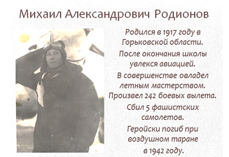 Разрабатывая урок, внеурочное занятие (кружок) или внеклассное занятие оно должно соответствовать новому стандарту образования. В частности, затрагивать вопросы духовно-нравственного развития, ориентироваться на воспитание гражданина своей страны, знающего и уважающего свою историю. И в краеведческую часть разработанного мной занятия, я не могла не включить эти моменты. Наш город – героический. Названия улиц служат своего рода летописью исторических событий. Улица 9 Мая, в грозном 1941 году в этом районе были построены оборонительные сооружения, здесь проходила линия обороны столицы. Протаранив немецкий юнкерс, геройски погиб Михаил Родионов. Именем героя войны Родионова названа соседняя с нашим лицеем улица.
