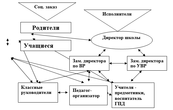 Проектное мышление руководителя современной школы обеспечивает сегодня эффективность решения задач, определенных в федеральных государственных образовательных стандартах нового поколения [2]. Модель воспитательной системы школы становится ориентиром для системного планирования воспитательной работы в школе, позволяет реагировать на возможные изменения , вызовы и риски.