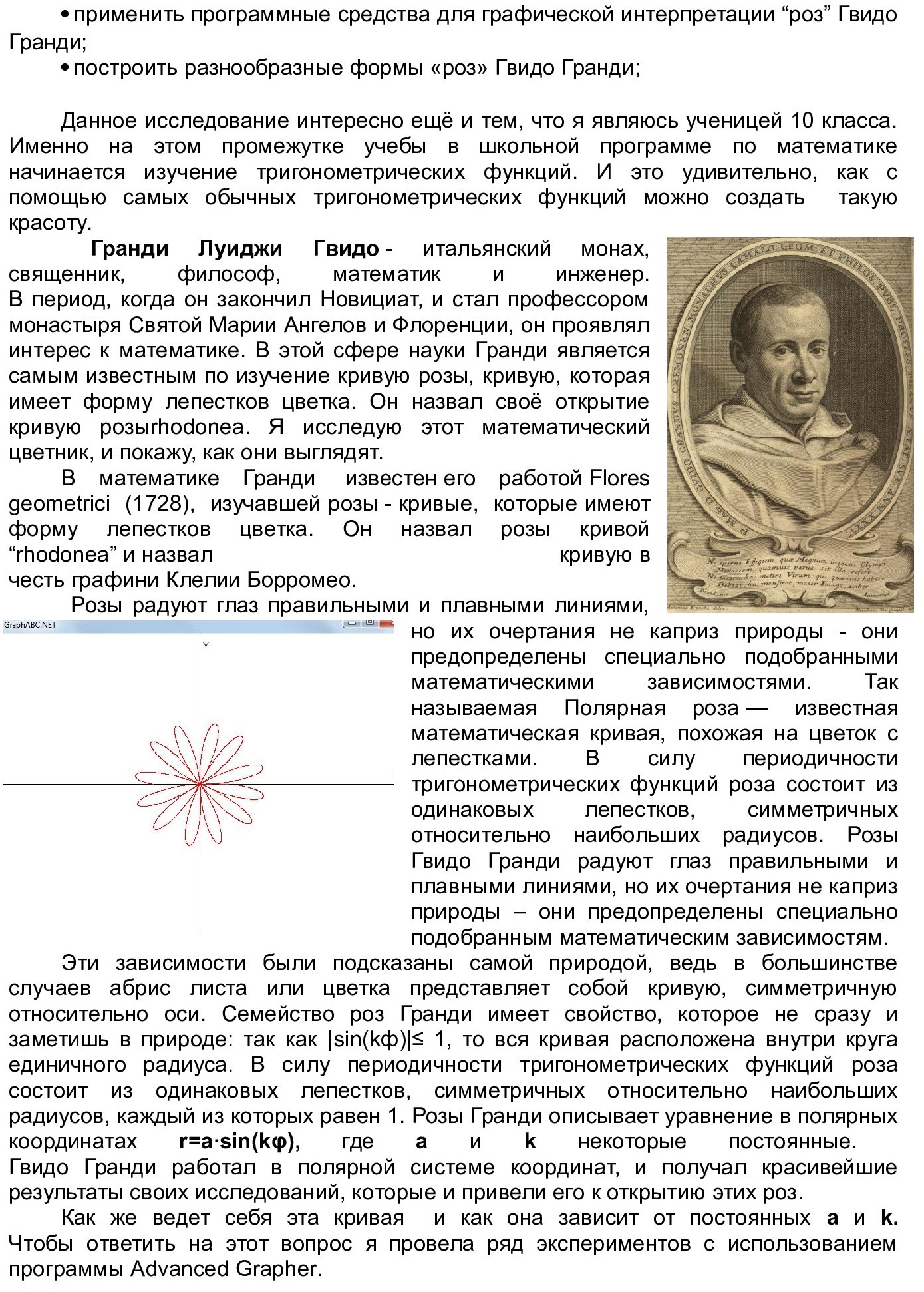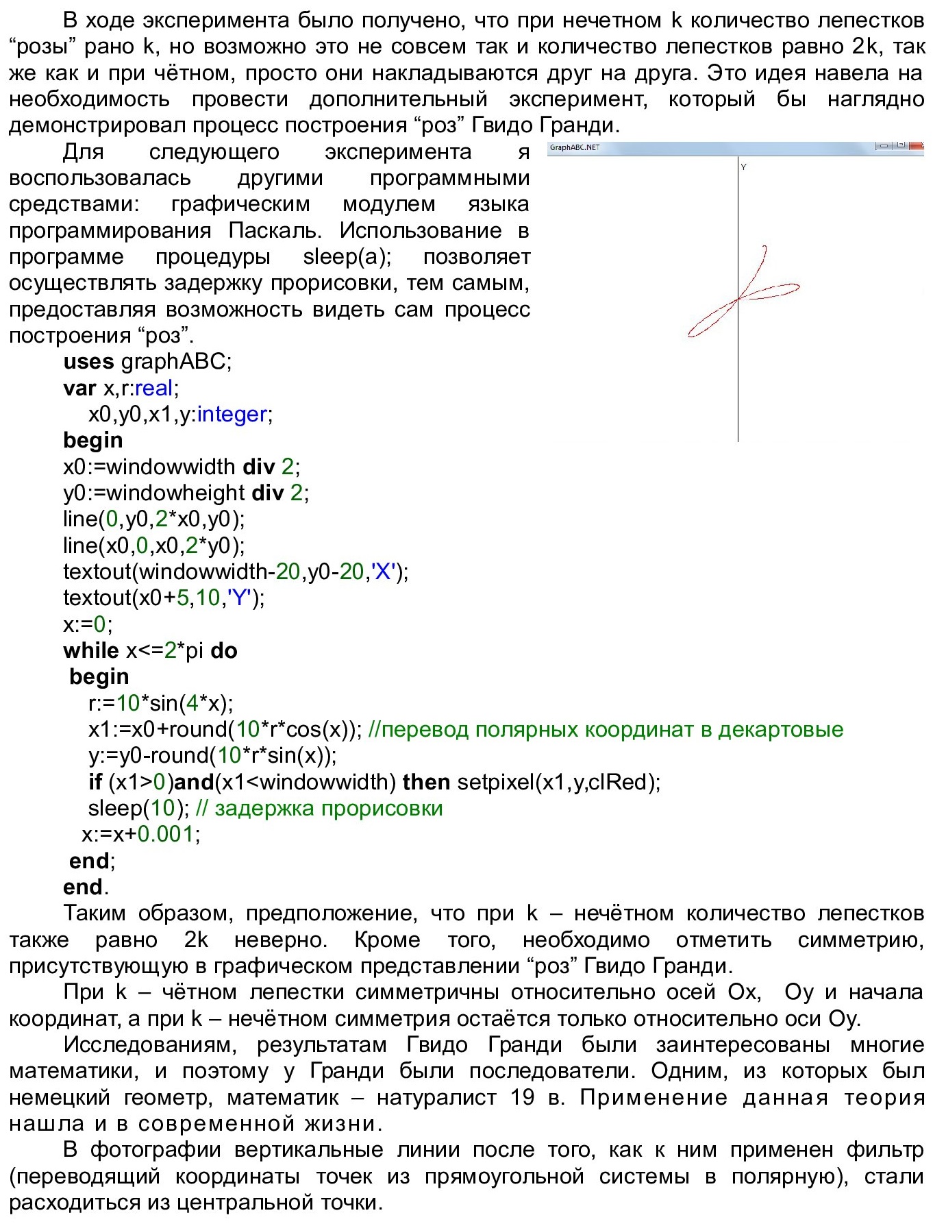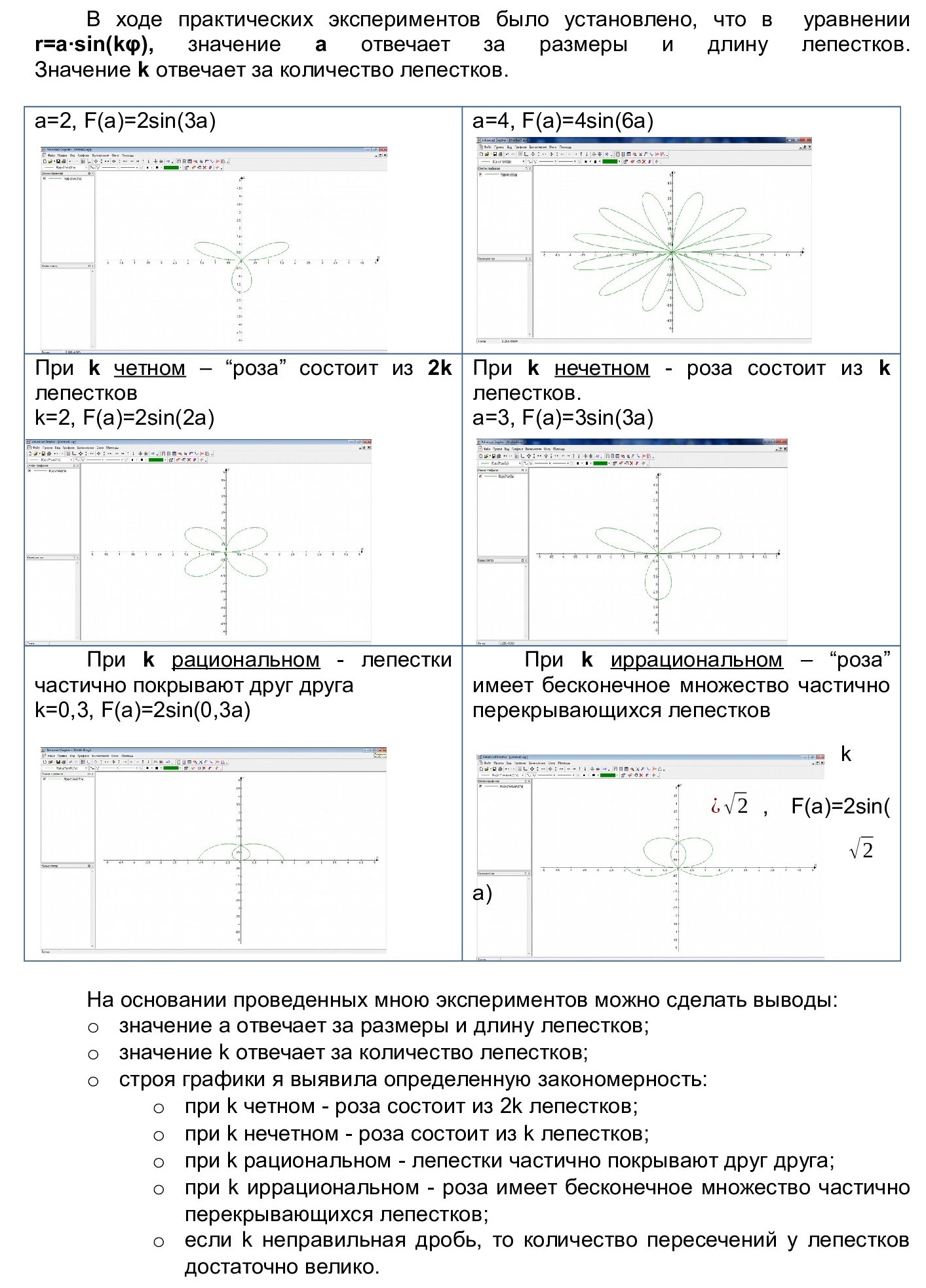 Аннотация. В данной статье исследуется зависимость графика функции r=a•sin(kφ) от параметров a и k. Для исследования используются программа Advanced Grapher и язык программирования Pascal ABC.