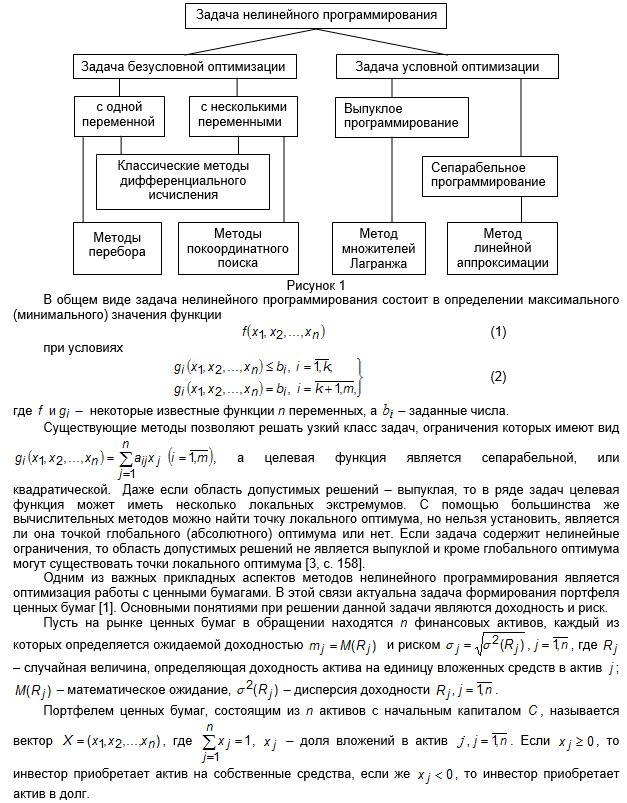 В последние годы в самых разнообразных областях человеческой деятельности, в которых необходим выбор одного из возможных образов действий, широко применяются задачи математического программирования. Это задачи оптимизации, заключающиеся в нахождении в заданной области, определяемой некоторыми ограничениями, точек экстремума некоторой функции, зависящей от большого числа переменных. В экономических исследованиях при решении проблем управления и прогнозирования производственных процессов, в проектировании и перспективном планировании и т. д. эффективно используются методы нелинейного программирования [2].