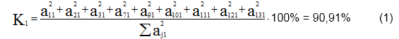 Первым этапом факторного анализа является определение новых признаков (главных компонент), которые являются линейными комбинациями прежних. Полученные компоненты должны вбирать в себя большую часть общей дисперсии наблюдаемых данных, чтобы передавать большую часть информации, заключенной в первоначальных наблюдениях [1].
