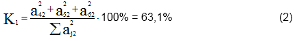 Полученный результат говорит о том, что выбранные показатели объясняют 63,1% дисперсии фактора уровня жизни населения – второй главной компоненты.