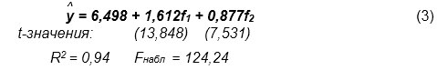 По полученным компонентам построим уравнение регрессии зависимости численности детей, поступивших в детские дошкольные учреждения в Республике Марий Эл (y), от выделенных факторов. В процессе реализации алгоритма регрессионного анализа получено следующее регрессионное уравнение: