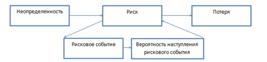 Неопределенность является предпосылкой для риска, где он, в свою очередь, состоит из рискового события, нарушающего ход проекта, изменяющего процесс создания продукта проекта, а также вероятности наступления этого рискового события, то есть вероятности неблагоприятного исхода. Риск всегда сводится к некоторому результату, при этом отечественные ученые выделяют три исхода: