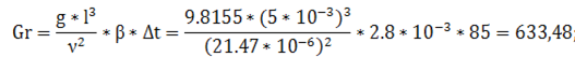 Определим число Грасгофа для воздуха, проходящего через охладительные отверстия, в пластине прожектора, по формуле :