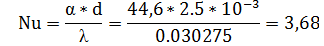 5) Найдем число Нуссельта для потока воздуха, охлаждающего светодиоды, по формуле: