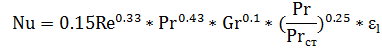 При небольших разностях температур отношение (Pr/Prст) можно принять равной 1.