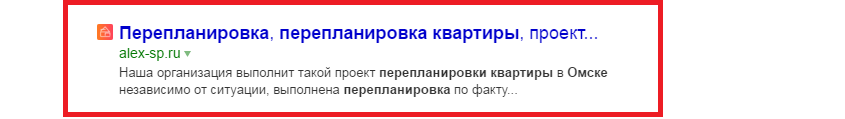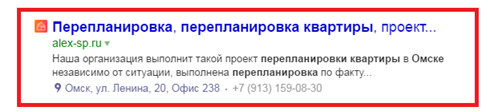 Рисунок 1 – пример сниппета выдачи поисковой системы Яндекс