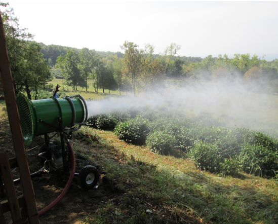 В критический для чайного растения период: в июле с 13.07 по 16.07, августе с 02.08 по 05.08 и с 29.08 по 30.08 был проведен мелкодисперсный полив (далее по тексту МДП) чайных растений с разовой поливной нормой из расчета 20 м3/га. Всего сделано 10 поливов (см. рис.2).