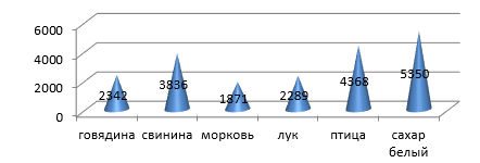 Рис. 1 Объем потребления продуктов – лидеров по импорту в Россию в 2013 г., тыс. т [9]