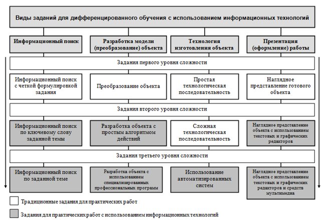Рис. 1. Виды заданий для дифференцированного обучения на уроках технологии