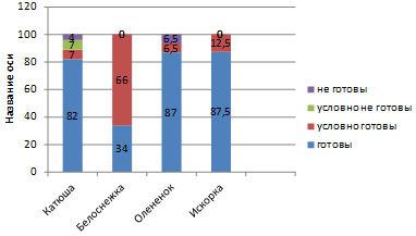 Такая форма тестирования помогает взаимодействовать с участниками образовательного процесса. Результаты обследования уровня школьной готовности по методике М.М. Семаго, Н.Я. Семаго применимы для реализации логопедических целей, потому как нарушение устной речи может явиться следствием недостаточного развития психических функций либо повреждённого развития структур головного мозга и артикуляционного аппарата. По результатам обследований педагог-психолог и учитель-логопед проводят качественный и количественный анализ данных, который поможет спрогнозировать конечный результат обучения к концу первого класса и будет являться базовым для выработки общих рекомендаций, выявления динамики и определения путей коррекционной работы. Результаты каждого обследованного первоклассника заносятся в таблицу, где основным параметром, по которому ранжируются результаты, является общий балл. Составляются диаграммы уровней психолого-педагогической и речевой готовности.