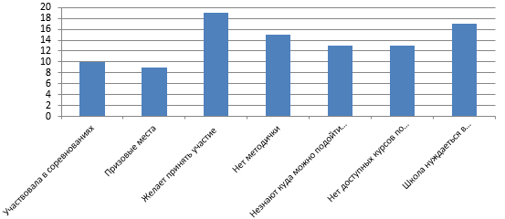 В ходе анкетирования были выявлены следующие показатели, на вопросы которые учителя школ ответили следующим образом отображено диаграммой 2.