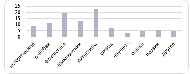 в ходе первичного констатирующего эксперимента, проведенного среди студентов младших курсов и учащиеся 8-11 классов (всего было опрошено 312 человек), которые показали, что более 20% отметили в круге своего чтения детективы. И это не удивительно: такой выбор обосновывается влиянием на интересы читателей массовой литературы и культуры, снижением интереса к классической воспитывающей литературе.