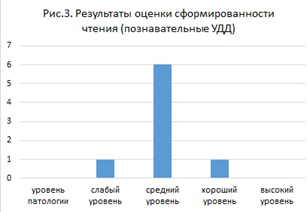 Оценка сформированности навыков чтения у учащихся по методическому комплексу «Прогноз и профилактика проблем обучения в 3-6 класса» Л.А. Ясюковой показала, что только у 1-го ученика хороший уровень сформированности навыка чтения, у 1 – слабый уровень, а у 6 – средний уровень (рисунок 3).