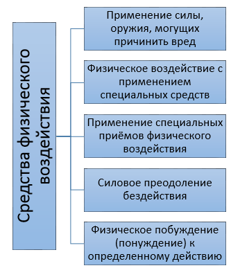 Формой применения силы выступает физическое принуждение с целью преодолеть неповиновение, силой принудить повиноваться, подчиниться (Таблица 1).