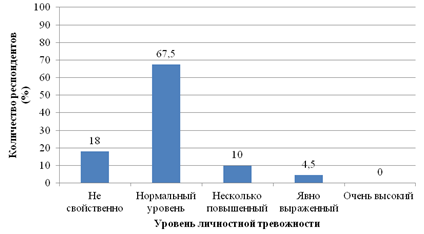 Рис. 1. Распределение респондентов по уровню личностной тревожности