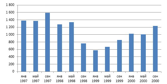 Рис. 1.1. Динамика объема импорта РФ в1997-2000 гг.