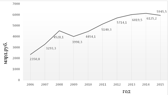 В 2015 году в строительный вид деятельности России вложено 448,7 млрд. рублей инвестиций в основной капитал. По сравнению с соответствующим периодом 2014 года объем инвестиций сократился на 4,3% [4].