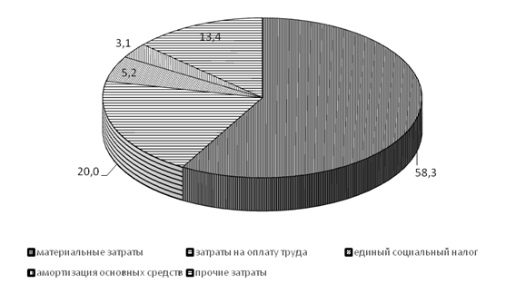Рисунок 2 – Структура затрат на производство строительных работ в РФ, 2015г.