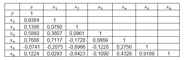 Таблица 1 – Матрица парных коэффициентов корреляции