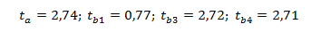 Оценка статистической значимости параметров регрессии проверяется с помощью t-статистики Стьюдента. Выдвигаем гипотезу Н0 о статистически не значимом отличии показателей от нуля: a = bi = 0, и определяем t-критерий Стьюдента: