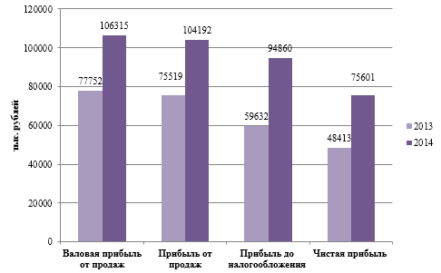 Рис. 1. Динамика основных показателей прибыли за 2013-2014 гг.