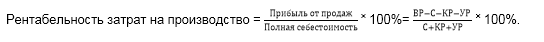 Следующим основным показателем рентабельности является рентабельность затрат на производство. Используя формулу рентабельности затрат на производство