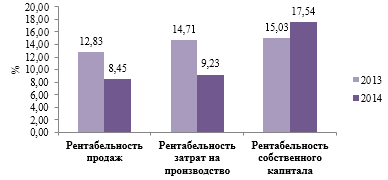 Рис. 2. Динамика основных показателей рентабельности за 2013-2014 гг.