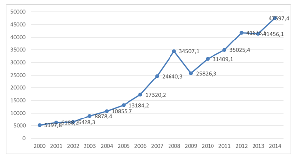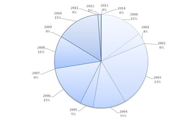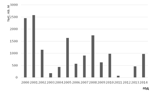 Рисунок 3 – Введены дошкольные образовательные учреждения с 2000 по 2014 год в Оренбургской области