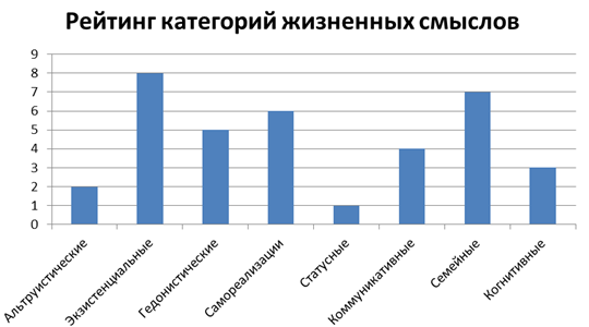 Диаграмма 1. Рейтинг категорий жизненных смыслов