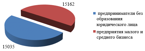 Общее количество субъектов предпринимательства, осуществляющих деятельность на территории города Оренбурга, в сравнении с 2014 годом (30 146 ед.), увеличилось на 51 единицу.