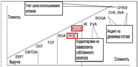 Рисунок 1 - Ранжирование коэффициентов по сложности расчета и точности диагностирования финансового состояния предприятия