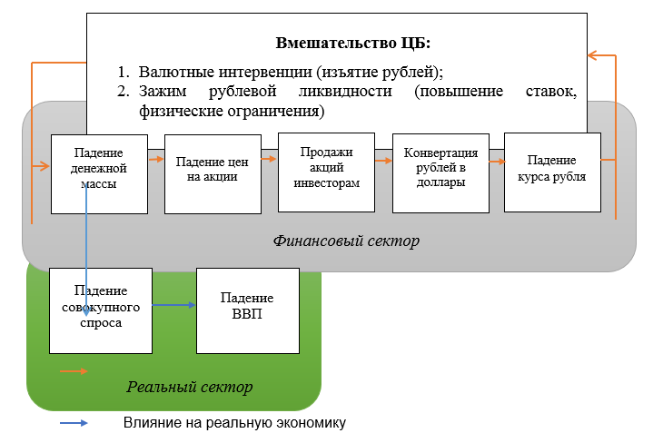 Рис.1 Влияние политики ЦБ на реальный сектор и финансовый сектор экономики