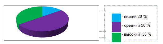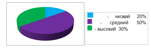 Итоги констатирующего этапа эксперимента выявили, что дети затрудняются подобрать необходимое оборудование самостоятельно, спланировать свои действия, это могут совершить 30% в количестве трёх человек. Наблюдение за детьми позволило сделать вывод, что у 20% детей, в количестве двух человек самостоятельность в трудовой деятельности сформирована, у 50% детей, в количестве пятерых человек присутствует частично. Таким образом, по результатам наблюдения за детской деятельностью 20% детей старшего дошкольного возраста в количестве двух детей присутствуют на низком уровне сформированности самостоятельности, 50% детей, в количестве пятерых человек на среднем, 30% детей, в количестве трёх человек находятся на высоком уровне. Общие результаты констатирующего эксперимента представлены в итоговой таблице № 1 и рисунке № 1.