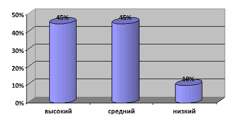 Высокий уровневый показатель соответствовал промежутку от 15 – 18 баллов;