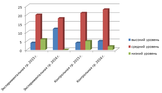 Сравнительная дагностика готовности к школе в экспериментальной и контрольной группах за 2015-2016 г.
