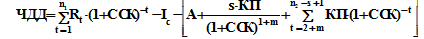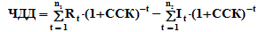 где ЧДД – чистый дисконтированный доход, руб.; Rt- ежегодные чистые денежные поступления, руб.; CCK- средневзвешенная стоимость инвестируемого капитала (ставка дисконта), отн. ед.; It- ежегодные инвестиционные затраты, руб.; n1- срок поступления доходов, лет; n2- срок осуществления инвестиционных затрат, лет.