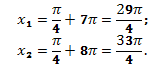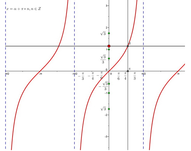 На графике находим ответ на задания а), нажав на флажок «Показать решение», отображается точка, которая является решением данного уравнения. Рассмотрев график в положительную и отрицательную сторону, находим период, который равен π. Таким образом, ответ можно записать в виде: