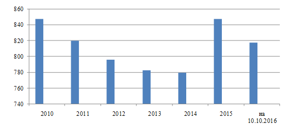 Если проанализировать данный рисунок, становится очевидным, что состав участников системы страхования вкладов претерпел существенные изменения. В зависимости от рассматриваемого периода наблюдается различная динамика участия банков в данной системе. Так, если взять период 2010 г., то здесь наблюдается высокий рост участия банков. Далее наблюдается снижение количества, что было связано с низким ростом экономического развития государства. Резкий спад наблюдается в период 2012-2014 гг., так число банков, участников системы в 2012 г. составляло 796, в 2013 г. – 783, в 2014 г. – 780 [4]. Такое сокращение связано, прежде всего, с несостоятельностью банков. В систему страхования вкладов были допущены некоторые кредитные организации, которые зарекомендовали себя как совершенно ненадежные, в свою очередь данная система не смогла предотвратить прекращение их деятельности.
