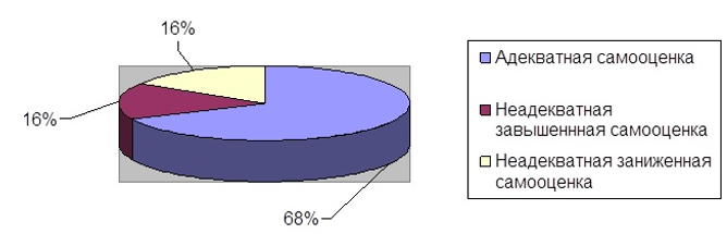 По результатам прохождения методики исследования самооценки личности С.А. Будасси средний уровень самооценки равен 0,65. Также мы можем сделать выводы о том, что доля испытуемых с адекватной самооценкой составляет 68%, соответственно 32% испытуемых с неадекватной самооценкой (16% - заниженная, 16% - завышенная).