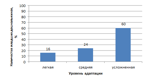 - у 16% (4 чел.) младших дошкольников произошла легкая адаптация;