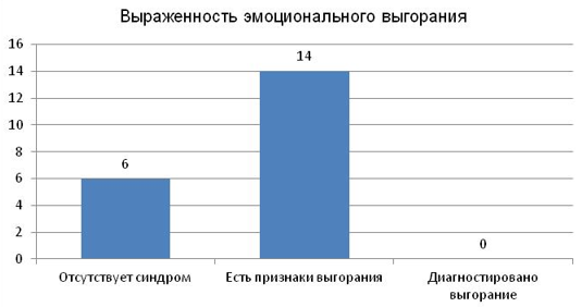 На базах детских садов проведено исследование синдрома эмоционального выгорания у воспитателей ДОУ, которое подтвердило актуальность исследования этой проблемы у воспитателей, выявило способствующие факторы, получено дополнительное представление о структуре и механизмах изучаемого синдрома.
