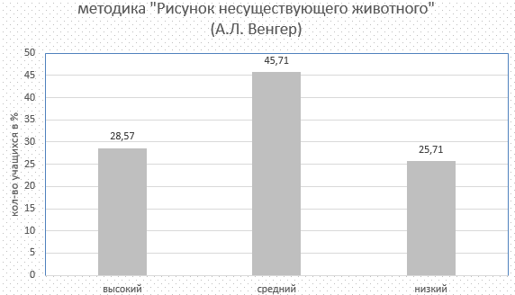 В процессе исследования были использованы следующие методики: «Диагностика состояния агрессии» Басса-Дарки, «Рисунок несуществующего животного» (А.Л. Венгер).