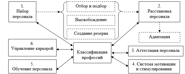 Самой рациональной и содержательной является система классификации, находящаяся в тесной взаимосвязи с другими подсистемами управления кадрами предприятия (рис.1).